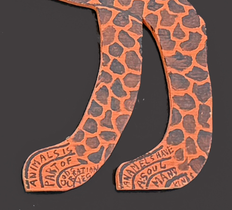 detail two back feet “Cheata – The Fastest Animel on Foot” #4131 dated January 10, 1985 by Howard Finster paint on wooden cut out 54.5″ x 24.5″ x 3/8″ $9500 #13739